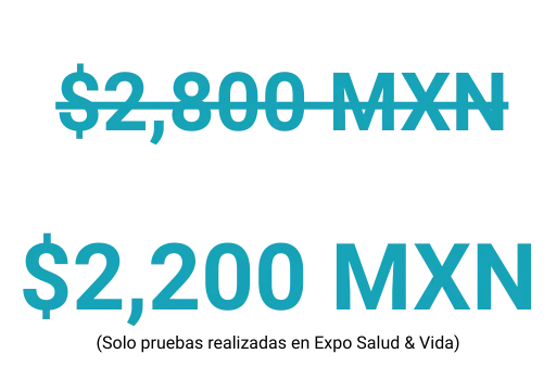 La prueba normalmente tiene un costo de $2,800 MXN, pero durante la Expo Salud & Vida 2025 ofreceremos un rpecio especial de $2,200 MXN. Aceptamos pago en efectivo, transferencias y pago con tarjeta de crédito.